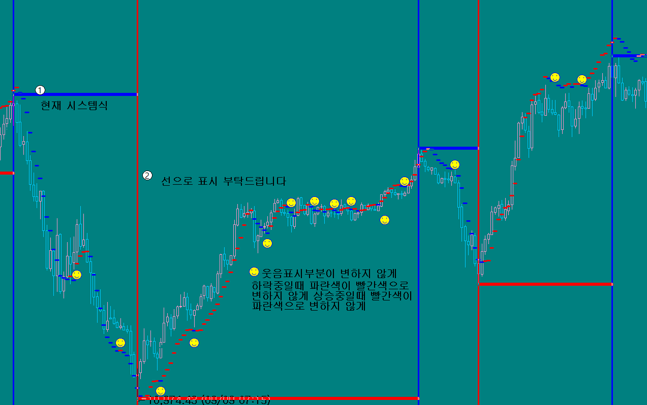 그리고 이평선으로 저가에서 고가까지 빨간색으로만 나오게 하고 고가에서 저가까지 파란색으로 나오게 부탁드립니다