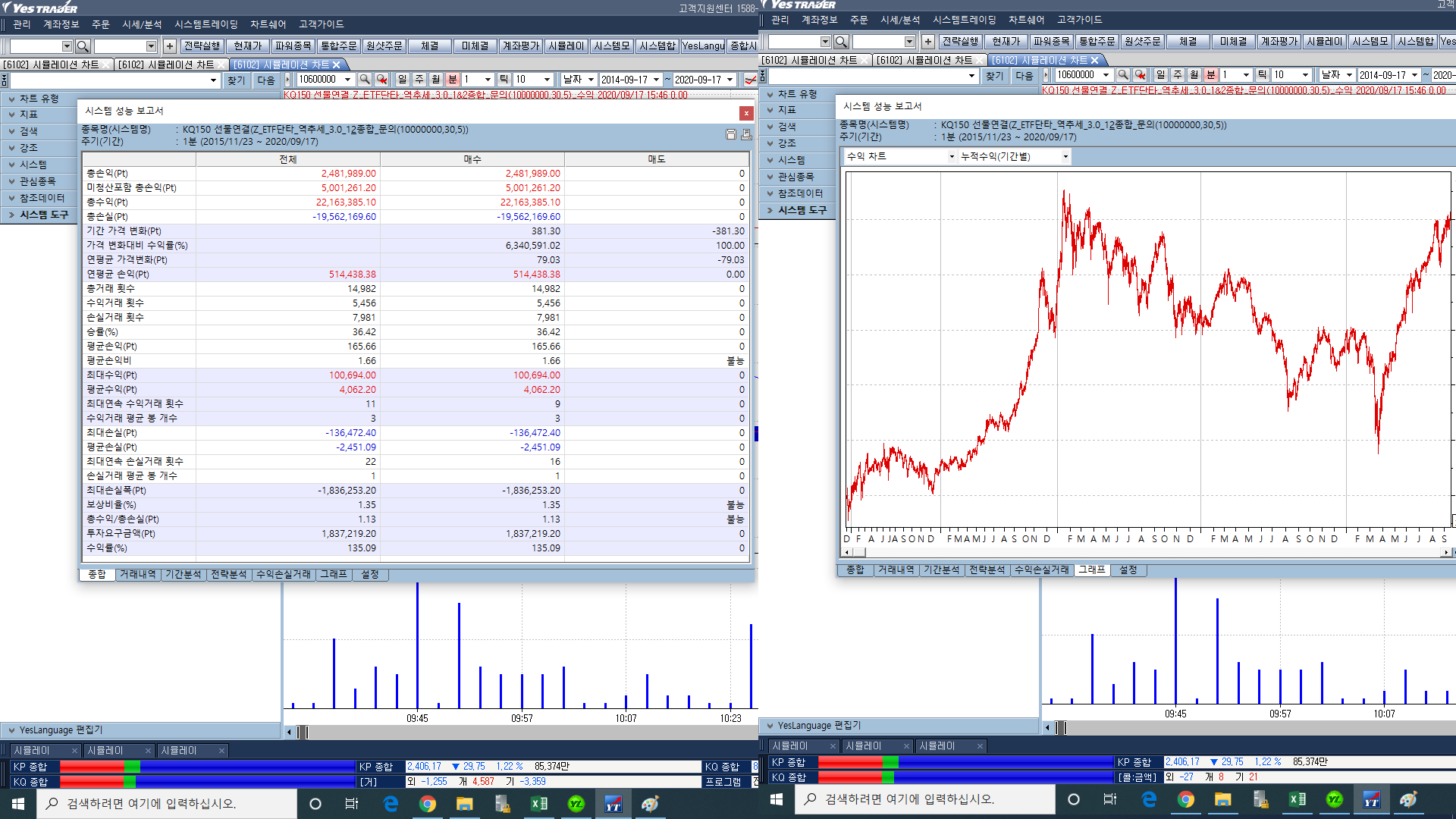 물론 고정진입수량을 지정하면 되지만, 예수금기준으로 매수 가능한 수량을 계산하여 매번 변화하는 계약수로 평가하는 의도로 작성하였습니다.