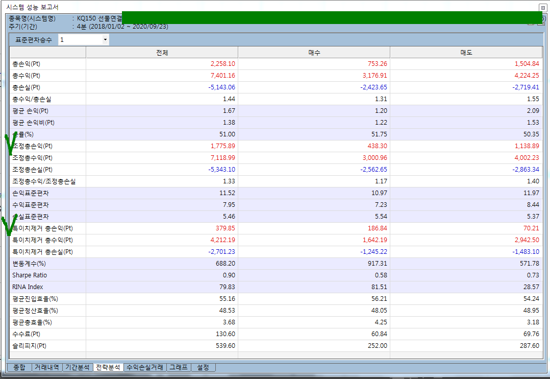 그래서, 제가 생각하기엔 표준편차의 범위가 너무 협소하거나 값이 유동적이지 않나 쉽습니다. 조정총손익이나 특이치제거총손익으로 전략의 실제 효용성을 많이 따져보는데 너무 큰폭으로 왔다갔다하니 참고하기에 어렵습니다. 이부분에 데이터 개선을 부탁드립니다.