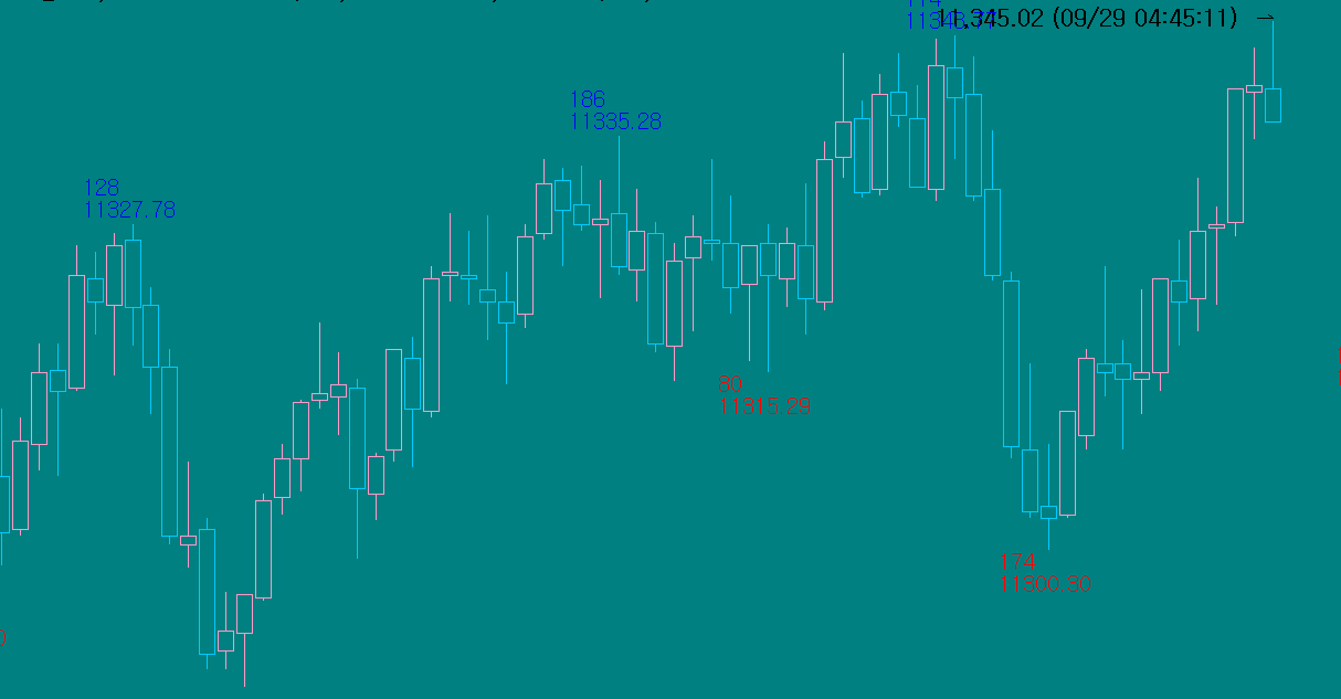 이걸 선으로 고점은 파랑 저점은 빨강으로 나오게 수정해주십요