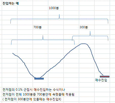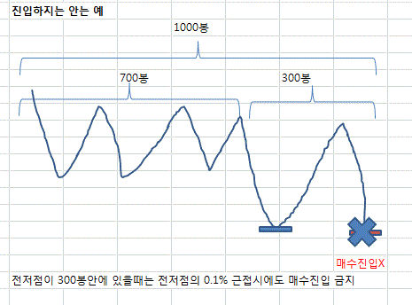 (data1의 1000봉에서 전저점이 300봉 에서 1봉 사이에서는 전저점의 0.1%근접시에도 매수진입 X)