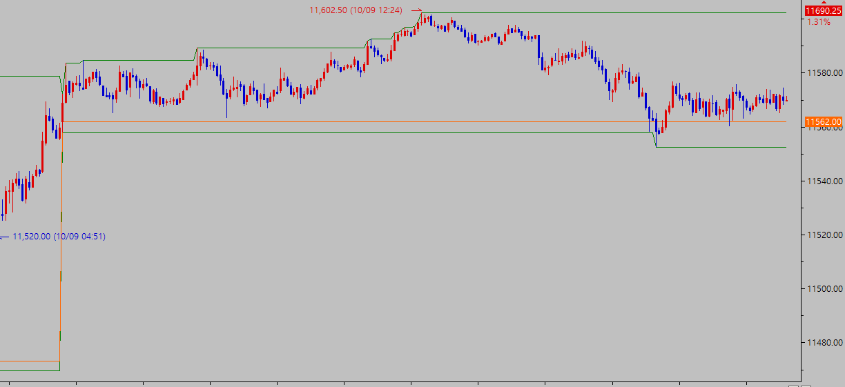 그런데 전일 시, 고, 저점의 선때문에 당일 차트가 위쪽으로 몰리는