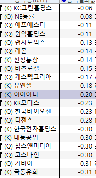 0인 종목은 0.001로 처리해 검색되게 수정해 드립니다.