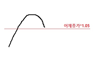 > 오늘 고가 도달후 저가 > 1.05*어제종가