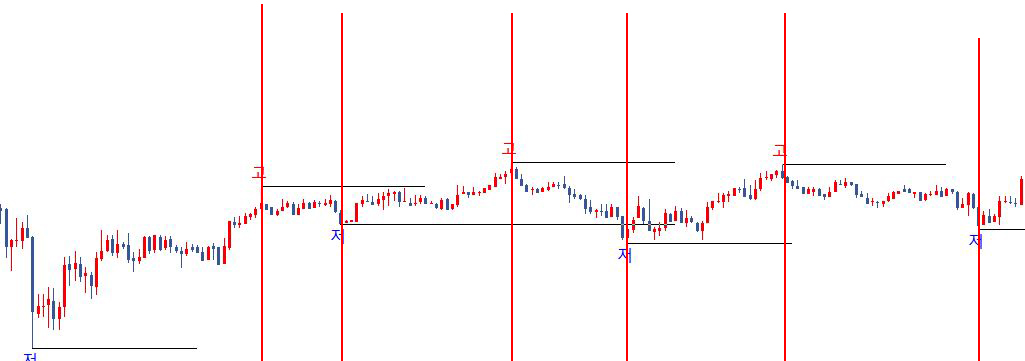아래수식에서 고점과 저점라인을