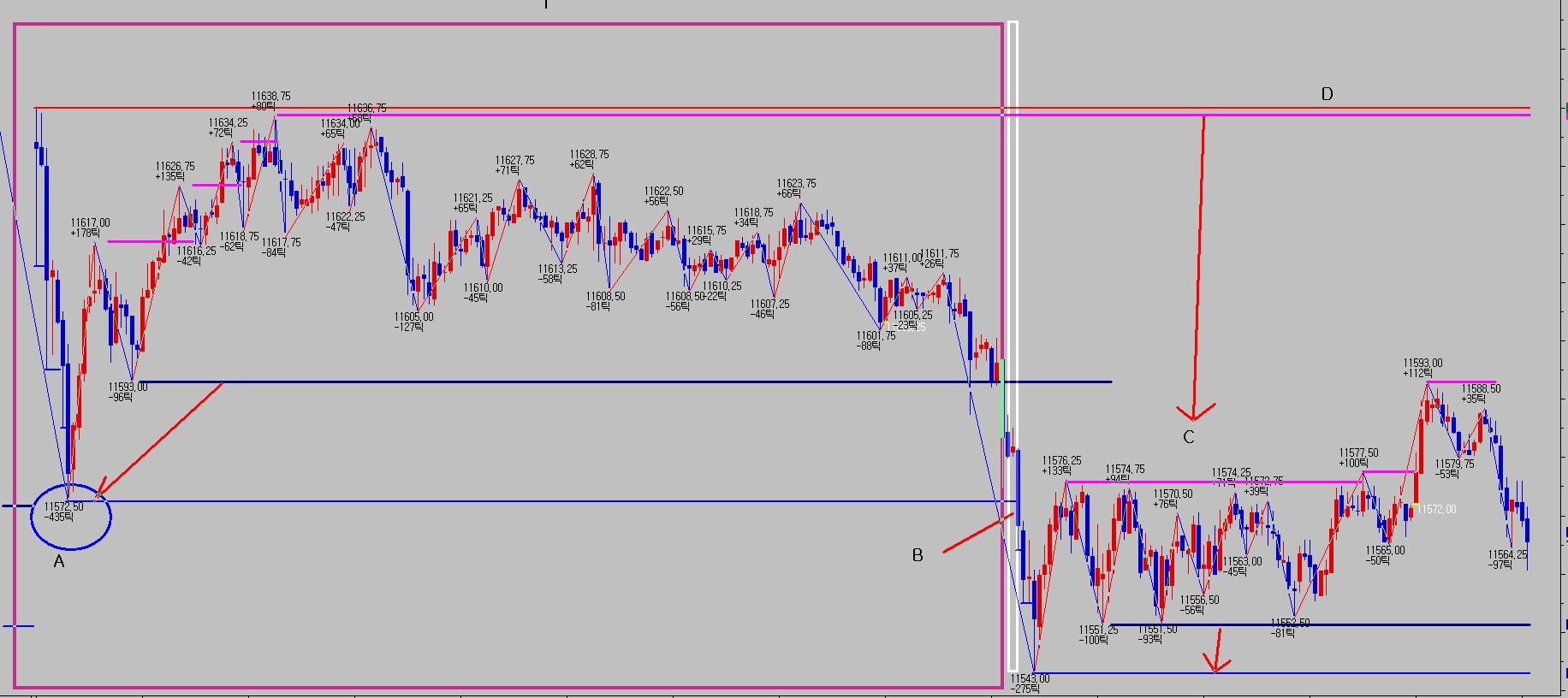 그림1에 C 지점처럼 DayLow 가 갱신하면 초기화후 lh변수가격은 고점중에 높은 가격을저장.