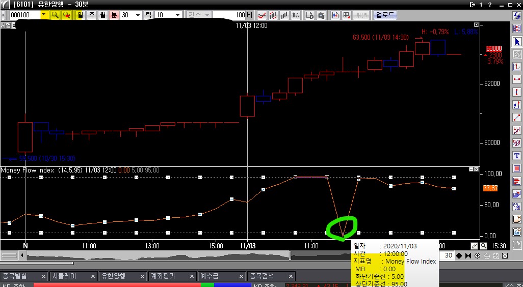 > 제목 : MFI 지표 수식의 문제 (분모가 0인숫자인식)