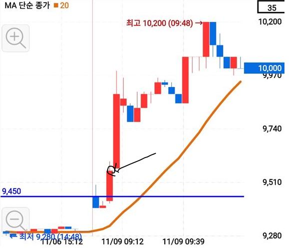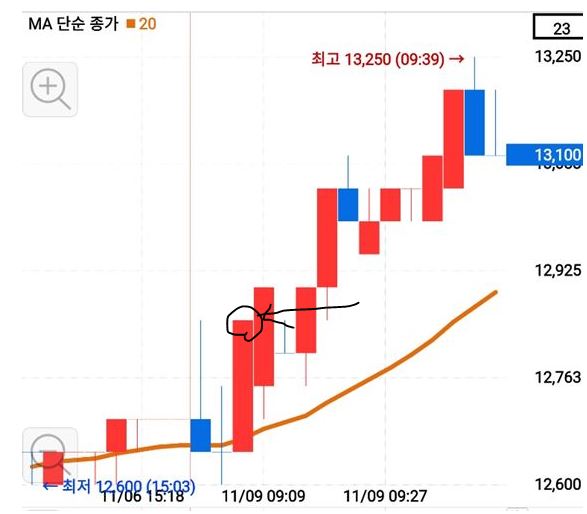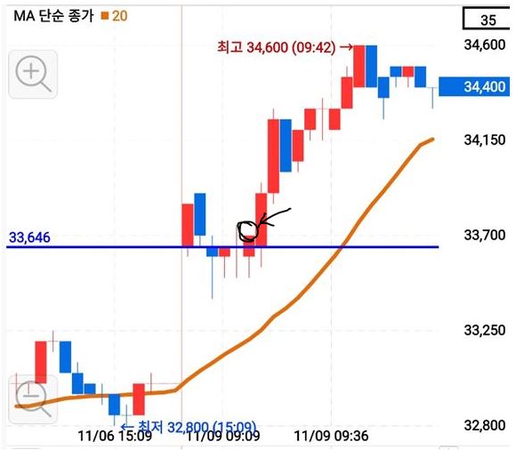 매수 : 시가라인 돌파했을 경우가 아니라 3분봉상 시가금액보다 떨어졌다가 돌파후 완성된