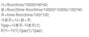 var : 시(0),분(0),초(0),시분초(0),Tgap(0);