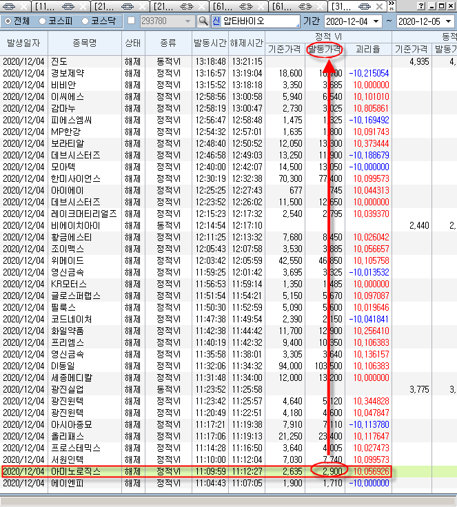 실제 정적vi가격은 2900이지만 2895까지 체결되고