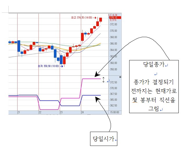 1. 시가를 첯봉부터 장 종료까지 그리고
