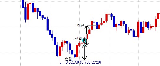 손절은 진입 봉 전 5개봉 중 최저가 -2틱