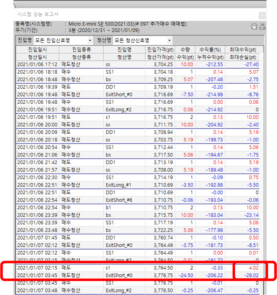 1.손실 커지면 계속 추가 매수 되야 하는데 추가 진입 안되는 부분 수정 요청 드립니다.