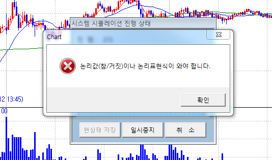 그래서 강제로 각 변수값을 0에서 true로 고쳐서 확인버튼 눌러도 여전히 값은 0에서 바뀌지 않고(이것이 문제2), 그래서 일단 시스템을 적용시켜 보면 예상대로 그림 3과 같이 당연히 논리값이 와야 한다고 에러가 나옵니다.