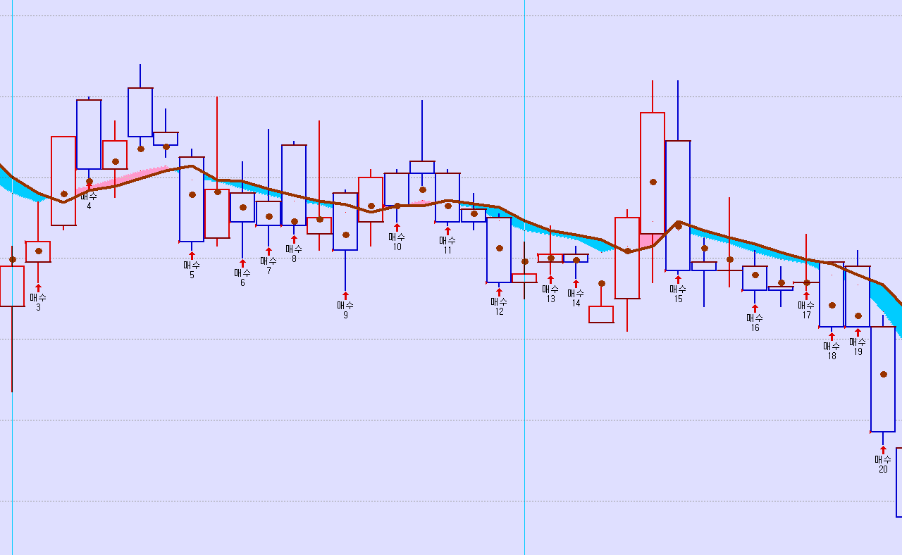 일봉에서 피라미딩 누적 매수를 합니다