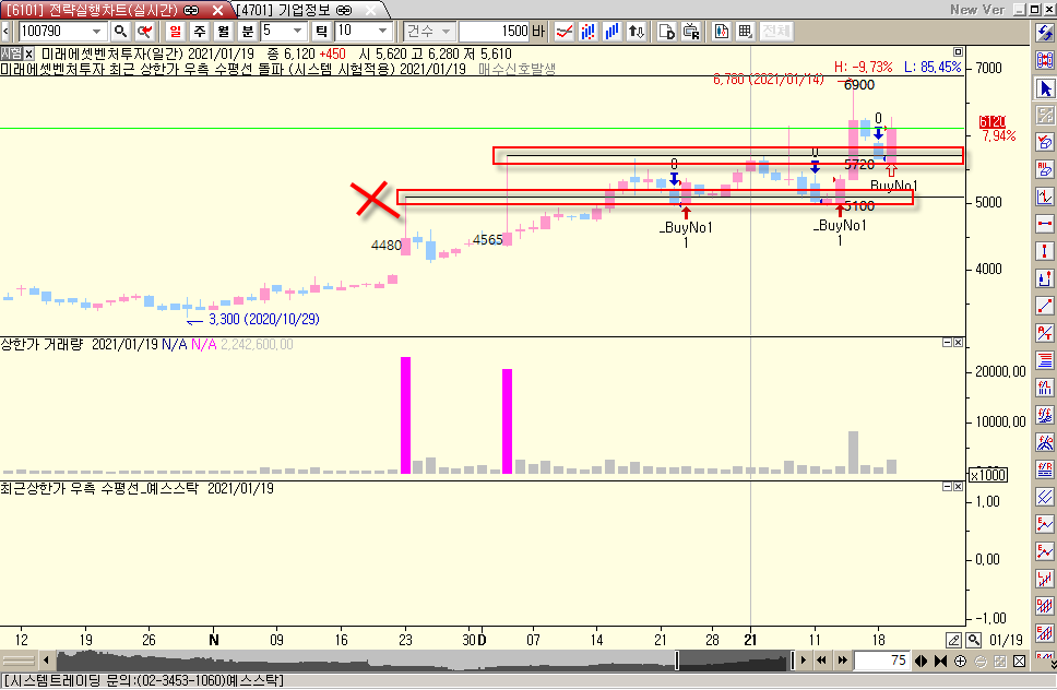 > 최근 발생한 상한가를 돌파하면 매수, 매도하는 시스템식인데요, 최근 상한가 이전의 봉을 돌파하면 매수가 되는데 변경 부탁합니다.