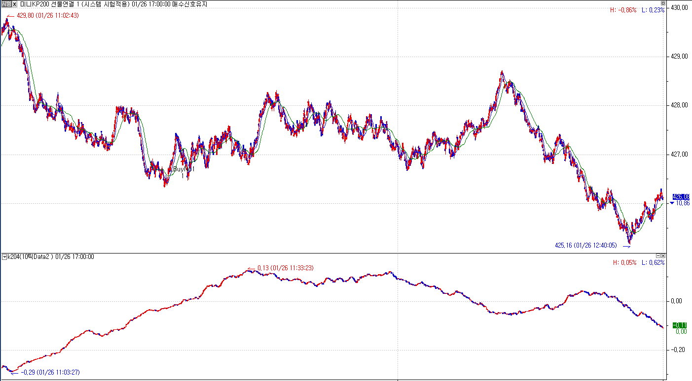 외국인선물수매수수량을 추가하고 해당식 적용한 화면입니다.