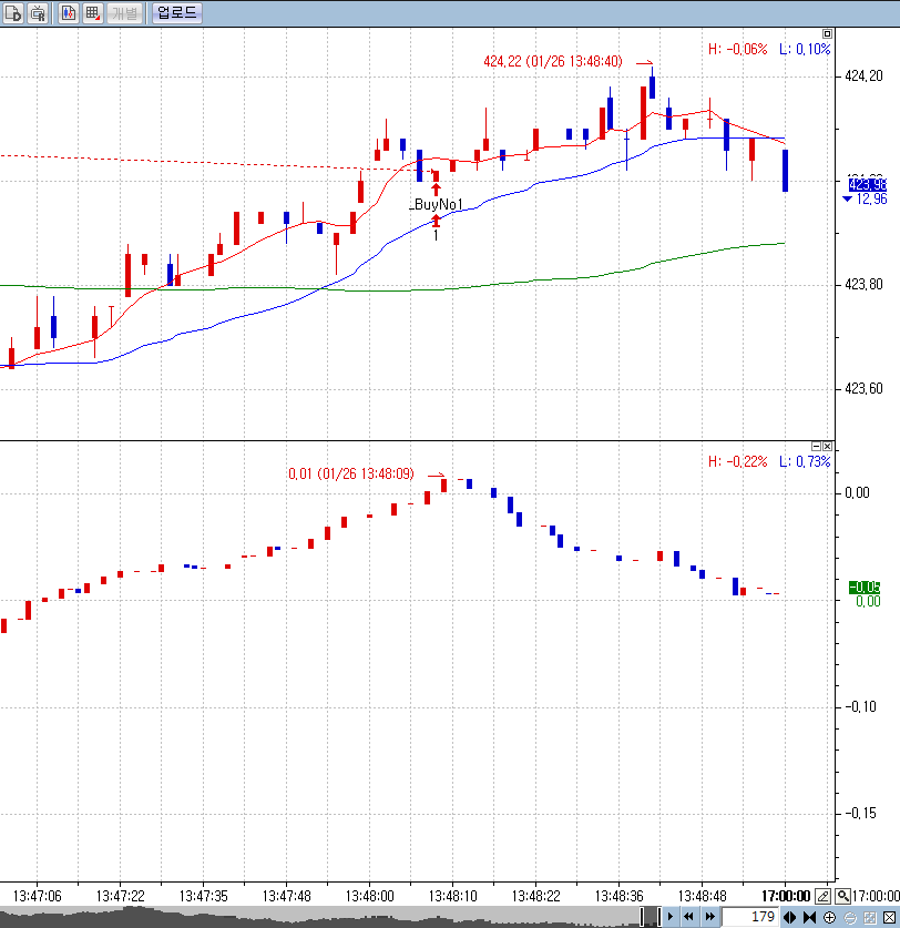 기본차트 봉완성시에 그때 완성된 data2를 기준으로 신호를 발생하는데