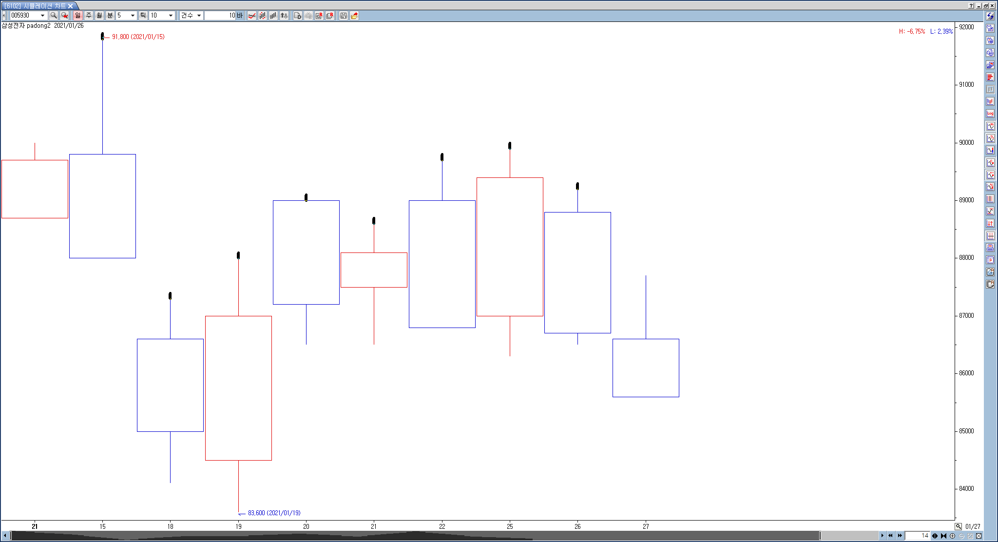 그림1에서 볼 수 있듯이 양 끝봉에서만 추세선 생성이 안되는 상태입니다.