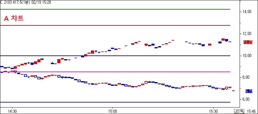 옵션챠트에서는 참조지표의 선이 본챠트에 제대로 표시되는데요 (A챠트)