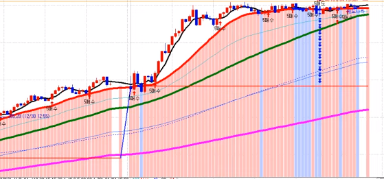 > 제목 : 이평선의 상승과 하락에 따라 이평선 아래 부분에 색상을 표현