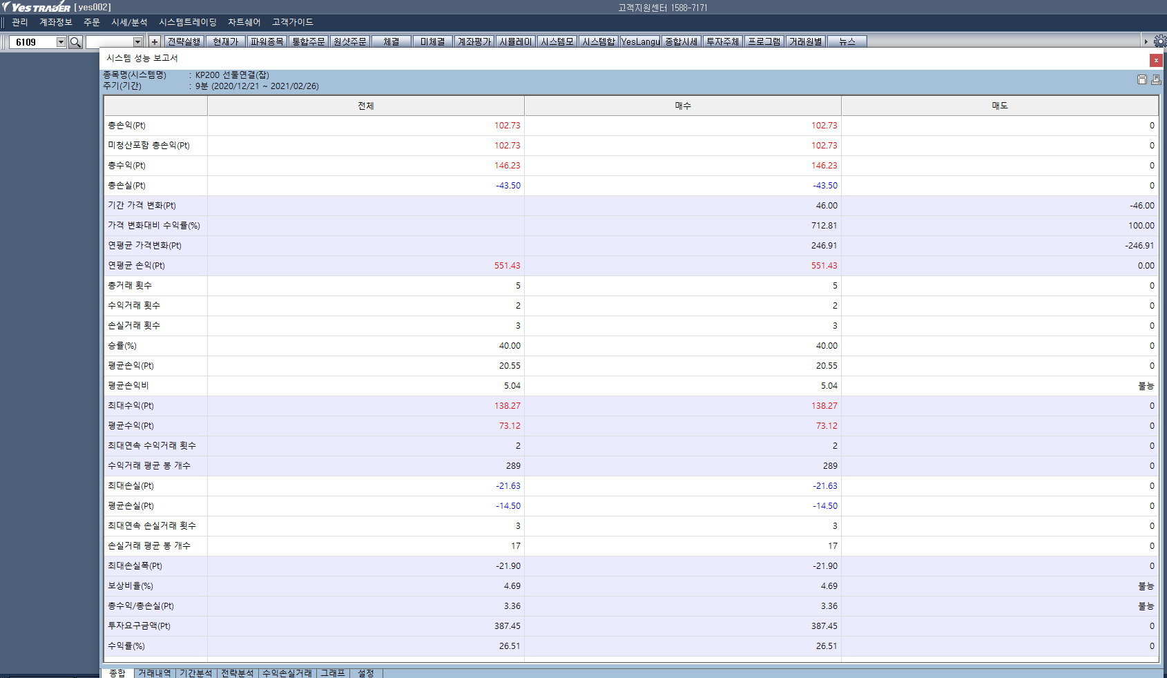 > 첨부 그림에 거래 내역을 보면 마지막 세번의 거래에서 얼추 45포인트가 손실을 보았는데