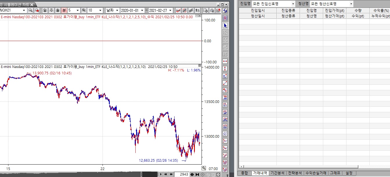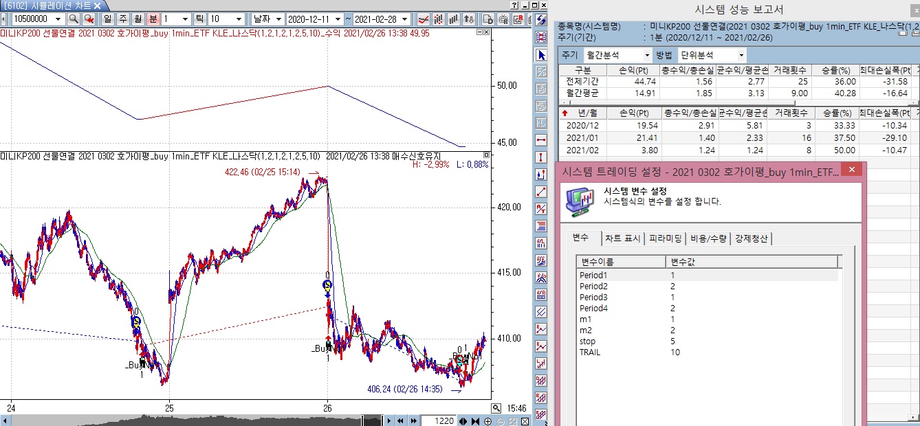 아래 수식은 국내선물에서는 시뮬레이션 결과가 나옵니다.(첨부1)