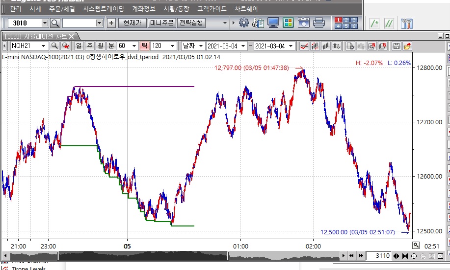 어느시점부터 최고점과 최저점을 표시해주는 지표식인데요 대략 1000개이후로는 나오지않습니다. 왜그런건가요?