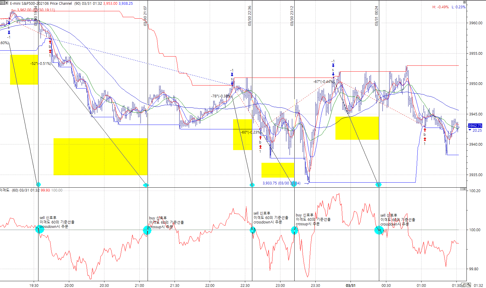 buy 신호후 이격도 60의 기준선 crossup시 주문