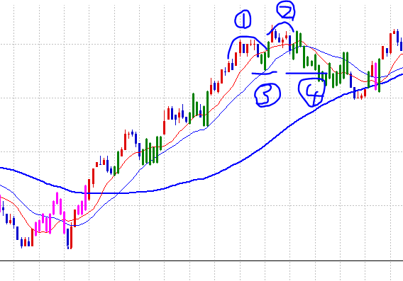 4.고점 3번이 넘으면 4번신호 발생