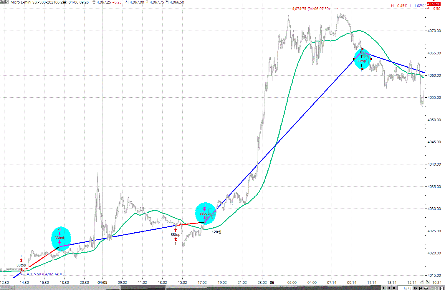 120선 위 BBBot 신호시 BBTop 전환후 120선 아래 BBTop신호시 청산하는 수식어를 추가 하고자 합니다