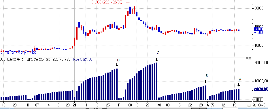 여기서 3월말일인 A 지점의 지표값(MV), 그리고 현재 4월21일의 B 지점의 지표값(MV)를 표현하고자 합니다.
