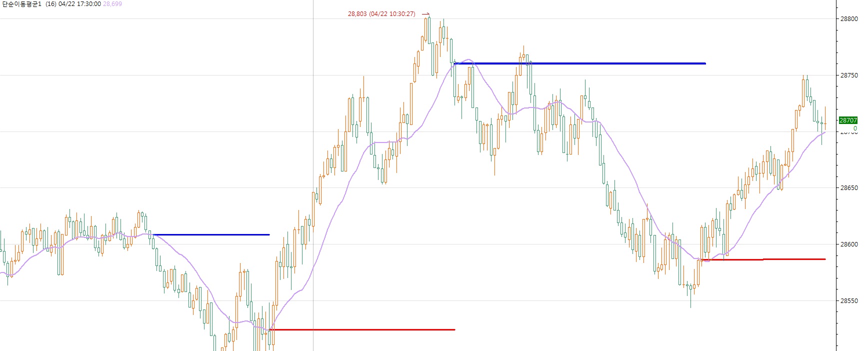 고점을 만들고 내려오거나 저점을 만들고 올라 갈때