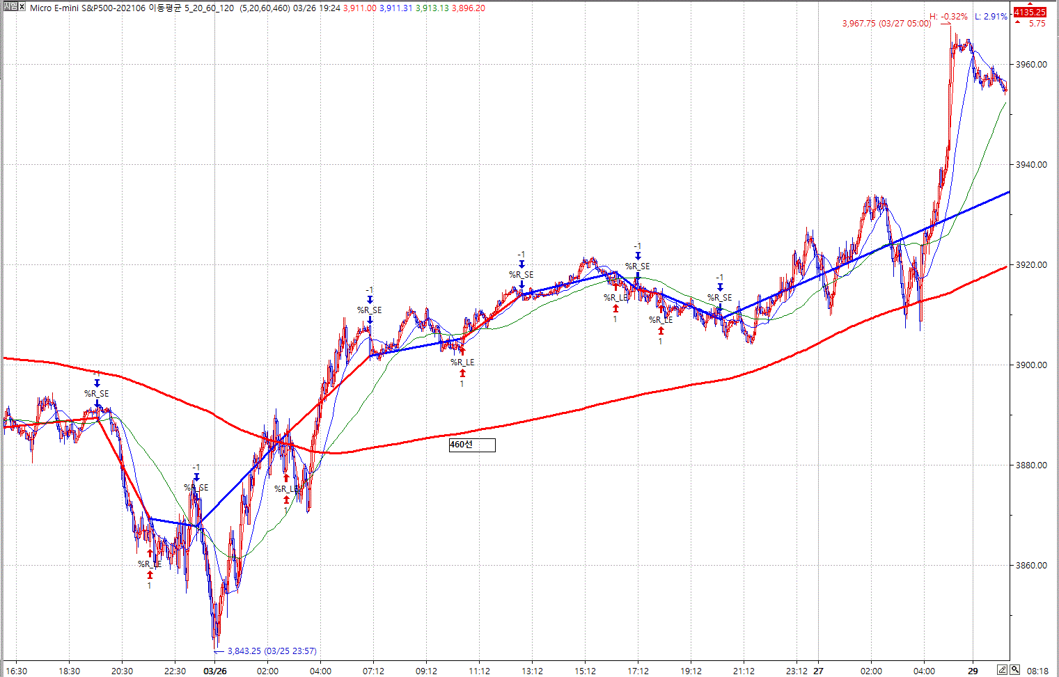 이동평균선 460선아래에서는 buy신호는 바로 sell신호로 전환하는 수식어와