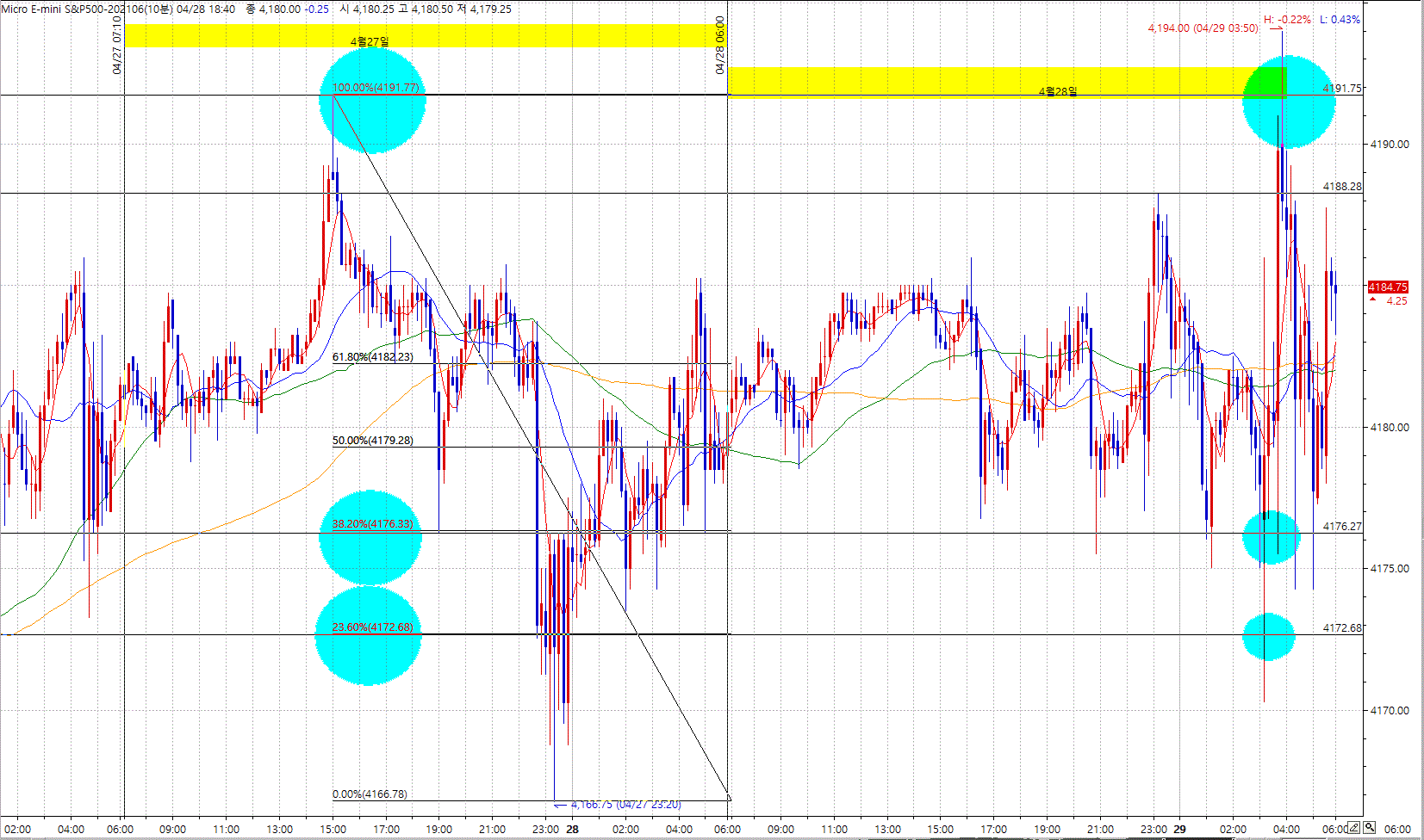 당일 진입신호후 청산을 전일 폭(07시~익일06시)을 피보나치 수열로 정하고