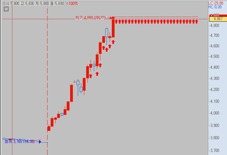 100억을 기준으로 놓고 봤을때... 모두 예시차트로 한국선재 종목입니다.