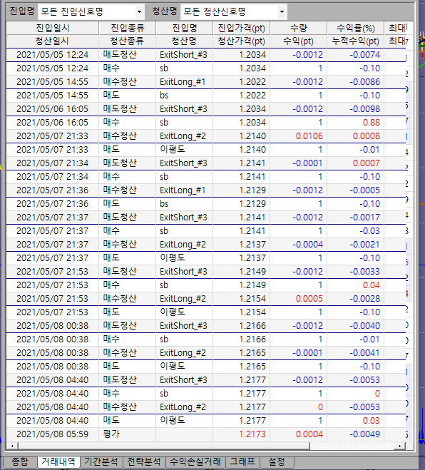 표시 되면서 수식 대로 실행 이 안되고 1틱이나 같은 가격에 청산되고 체결되고