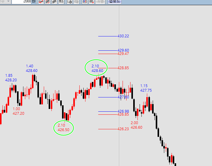 그러므로 저점은 해당봉의 저가가 됩니다.