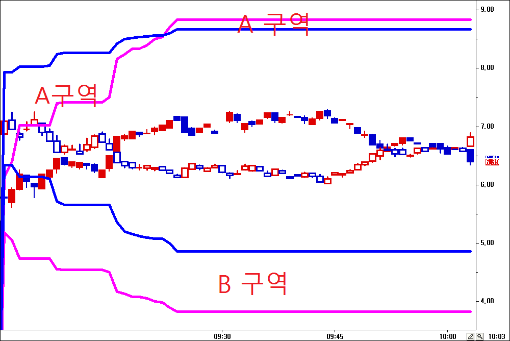 지표사이의 색을 채우는 부분은 수식으로 설정이 되지 않습니다.