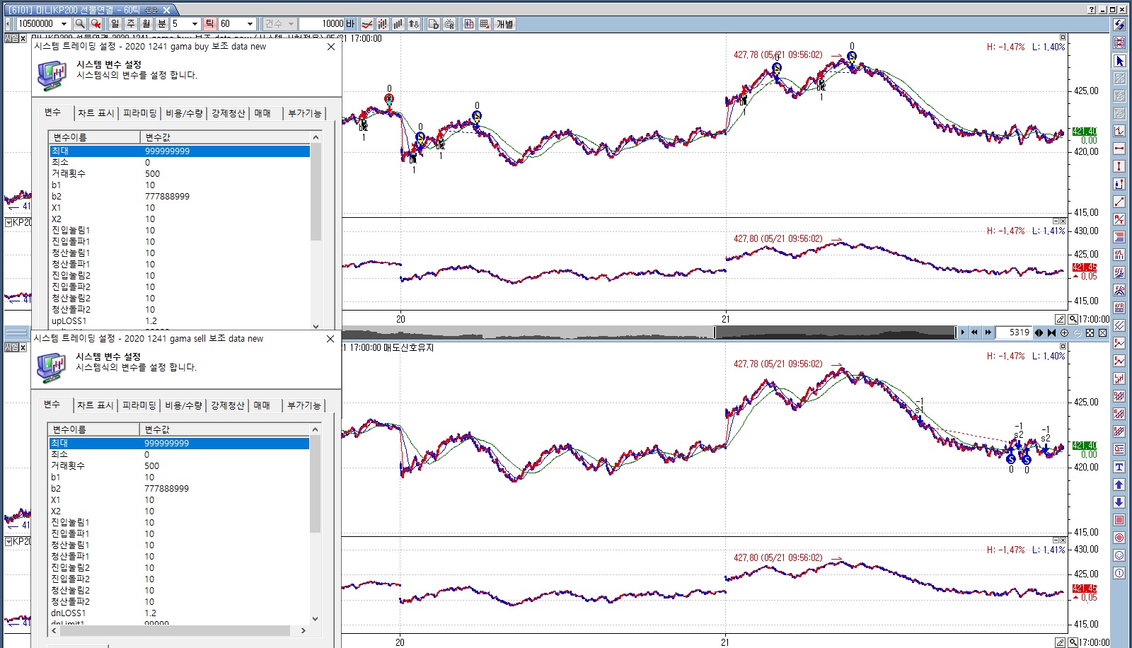 if MarketPosition == 0 and entry >= 1 and entry < 거래횟수 Then{