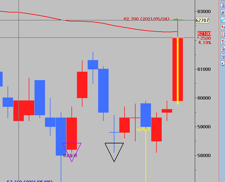 차트의 마지막봉은 미완성봉으로 해당봉에 텍스트등을 출력할 수가 없습니다.