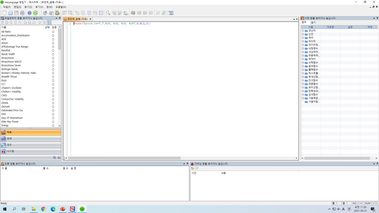 "프린트_분봉" 지표로 작성하여