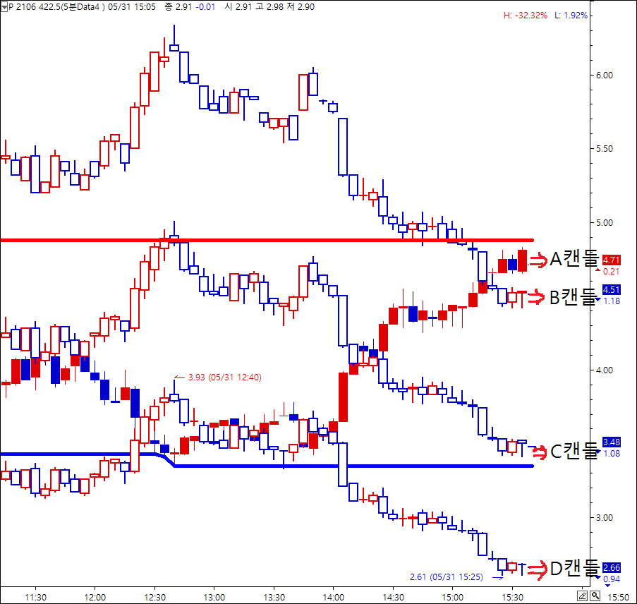 * 기준이 되는 A캔들은 콜캔들이 될수도 풋캔들이 될수도 있습니다