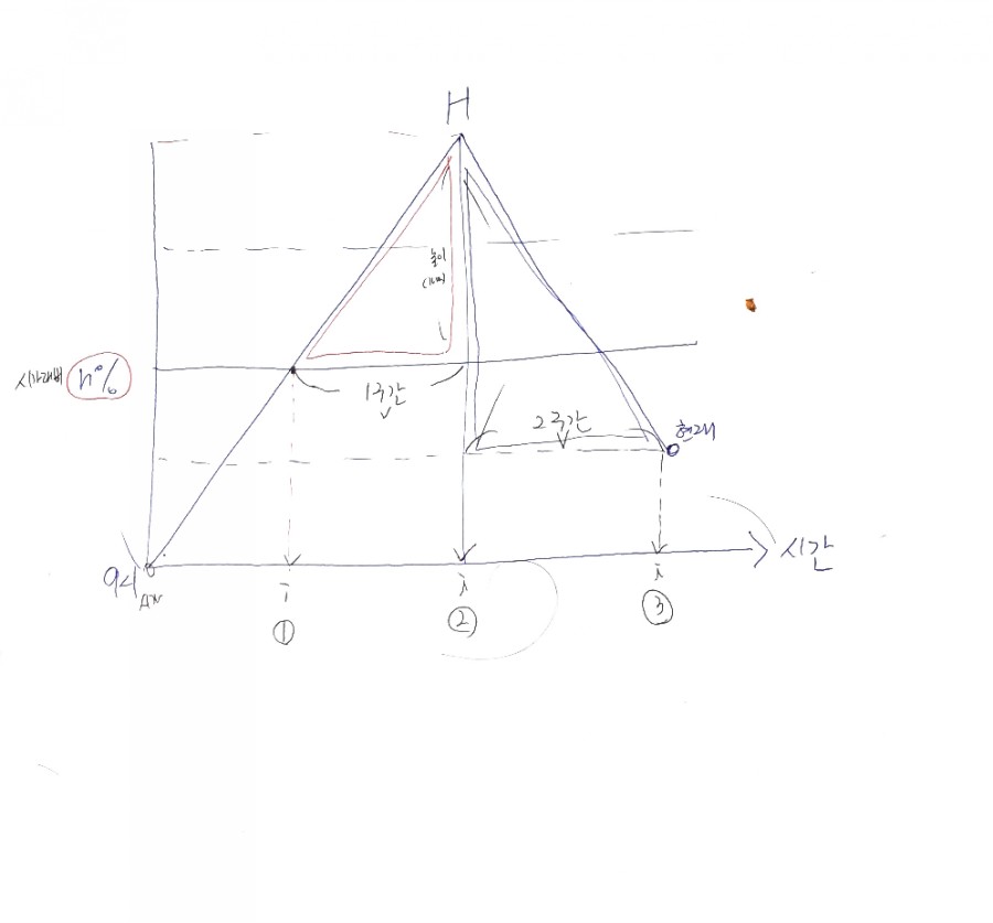 분자 = 2구간 삼각형의 가격(높이) : 당일최고가 ~ 현재가 사이