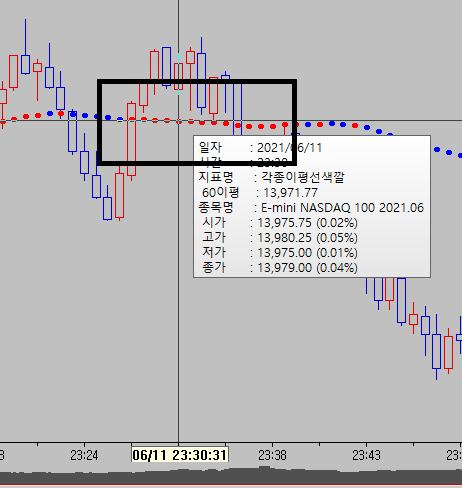 나스닥 6/11일 23:30 분쯤 300틱 차트입니다