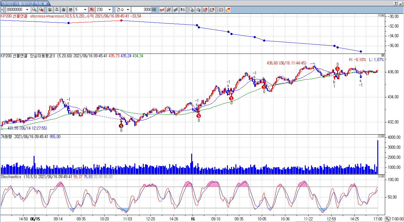 그리고 시뮬레이션 차트의 제일 위에 있는 수익곡선에서
