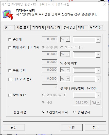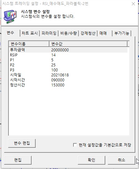 Input : 투자금액(20000000),RSIP(14), P1(5), P2(25), P3(100), 시작일(20210618),시작시간(090000),청산시간(153000);