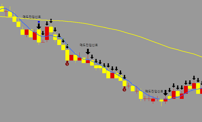 매도조건 5일선이 60일선 하락돌파시 5일선 +2틱에서 매도진입
