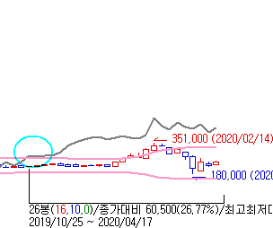 볼린저 밴드(26일 상단선 상향돌파) 돌파를 문의드렸는데 수식이 맞질않는지 검색이 되질