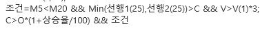 if ma(C, 5) < ma(C,20) && Min(선행스팬1[25], 선행스팬2[25]) > C && V > V[1]*3 &&